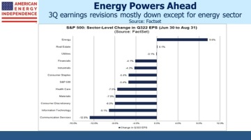 Konec výsledkové sezóny za 3. kvartál přinesl zajímavá data. Společnosti v rámci indexu S&P 500 vykázaly průměrný zisk vyšší o 2,4 % oproti stejnému čtvrtletí v minulém roce. Tento výsledek ale znamenal také nejpomalejší tempo růstu od 3. čtvrtletí roku 2020. Nejsilnějším ze všech 11 sektorů byla energetika, která ziskově narostla o 137 %.