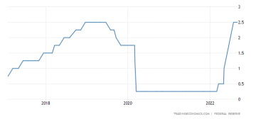 Meziročně inflace v USA narostla na hodnotu 8,3 %. Pozornost investorů a ekonomů zůstává u zvyšování úrokových sazeb Fedu. Poslední měsíční zpráva o inflaci totiž zvýšila pravděpodobnost, že americká centrální banka na svém nadcházejícím zasedání, které skončí ve středu, zvýší své úrokové sazby o 0,75 procentního bodu. Nebo také možná o celý procentní bod. Současné sazby jsou v rozmezí 2,25 % - 2,5 %.