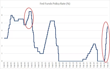 Graf: Ukazuje nedávný nárůst cílové úrokové sazby amerického Fedu. Zdroj: FRED