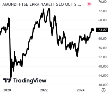 Navyšovali jsme i pozice v ETF fondech zaměřených na malé hodnotové akcie SPDR USA Small Cap Value a SPDR EU Small Cap Value. Ty korigovaly v návaznosti na obavy z možné recese, nicméně dlouhodobě těmto společnostem věříme vzhledem k jejich nízkému ocenění a faktu, že by měly výrazně profitovat z poklesu úrokových sazeb ve světě. Přináší tak do portfolia nejen diverzifikaci, ale i potenciál solidního střednědobého zhodnocení. Podobný příběh představuje i další pozice Amundi EPRA Global, která vytváří expozici na globální nemovitostní společnosti, i ty budou těžit z postupného poklesu nákladů dluhového financování, což se v jejich cenách již začíná postupně projevovat (viz graf).