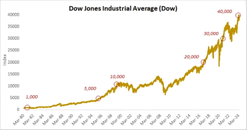 Akciový index Dow Jones úspěšně pokořil metu 40 000 bodů, zdroj: edwardjones.com