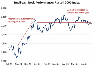 Akcie malých společností (Russell 2000) letos prakticky jen stagnují, zdroj edwardjones.com