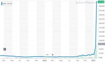 Graf týdne: Drobní spekulanti odstartovali astronomický růst akcií GameStop, zdroj: finance.yahoo.com