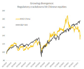 Pořádný rozruch vyvolává v poslední době čínský regulátor. Poté, co si dříve zasedl na ty největší internetové společnosti jako Alibaba, se nyní zaměřil na akcie soukromých vzdělávacích firem. Ty jsou v Číně poměrně populární, když poskytují tamním dětem vzdělávání nad rámec tradičních škol. Vláda těmto firmám nově nařídila stát se neziskovými organizacemi, společnosti zároveň nemůžou získávat prostředky na burzovních trzích.