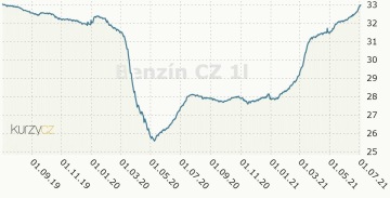 Ropa přitom roste navzdory tomu, že OPEC v červnu navýšil svoji produkci o 855 tisíc barelů denně. Řidiči si tak u čerpacích stanic připlatí, zatímco ještě začátkem roku se Natural 95 prodával pod 28 CZK/l, dnes zdražil v průměru na 33 CZK/l. Vyšší náklady na pohonné hmoty budou v příštích měsících tlačit inflaci výše, neboť vstupují do cen prakticky veškerého zboží a služeb.