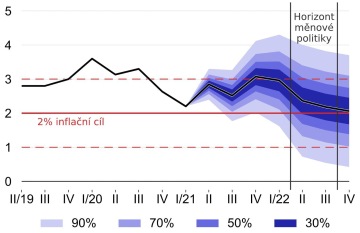 Graf týdne: Výhled inflace dle nové prognózy ČNB