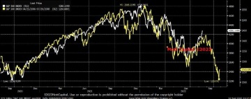 Graf: Porovnání indexu S&P 500 v letech 2008 (žlutá osa) a 2022 (bílá osa), zdroj: Michael J. Kramer