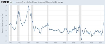 Graf týdne: Spotřebitelská inflace v USA nejvyšší za posledních 40 let, zdroj: FRED