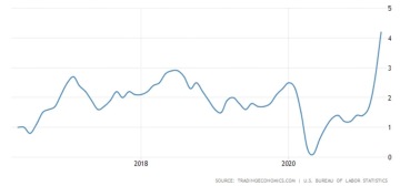 Hlavním důvodem nervozity na trzích byl středeční inflační report z USA. V dubnu se totiž růst cen probudil ze zimního spánku, když meziroční inflace dosáhla 4,2 %. Meziměsíčně pak ceny vzrostly o vysokých 0,8 %, výrazně nad odhady analytiků. Jsme tak svědky nejvýraznějšího zdražování za dlouhé roky. Jádrová inflace nezohledňující ceny energií a potravin dokonce meziměsíčně vystřelila o 0,9 %, tedy nejrychleji od roku 1981.