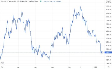 Graf týdne: Bitcoin odepsal téměř 50 % od svých podzimních maxim, zdroj: tradingview.com
