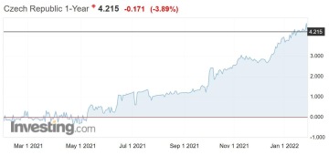 Graf týdne: Výnos do splatnosti ročního českého státního dluhopisu dramaticky roste