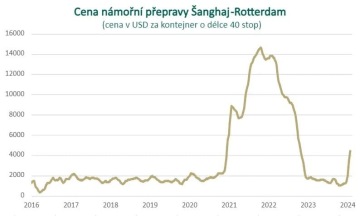Negativní zprávou pro světovou ekonomiku jsou však nepokoje v Rudém moři, kdy jemenští povstalci ohrožují lodě plující směrem k Suezskému průplavu. Jde o naprosto klíčové místo pro globální obchod, neboť ním každoročně prochází 30 % světové kontejnerové dopravy. Nyní však celá řada dopravních firem odklání své lodě na o dva týdny delší cestu okolo Afriky, což žene ceny přepravy z Asie do Evropy raketově výše. Zatímco ještě vloni na podzim stála přeprava kontejneru na této trase pod 1 tisíc dolarů, nyní dosahuje přibližně 4,5 tisíce dolarů. Cena i doba přepravy tak výrazně narůstá, což se může brzy negativně projevit v inflaci i ekonomice vyspělých zemí.