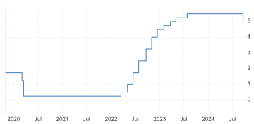 Fed snižuje sazby o 50 bazických bodů, zdroj: tradingeconomics.com