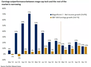 Zároveň podporou pro americké akcie je solidní vývoj ekonomiky USA, ke kterému přispívá i pozitivní přínos technologií umělé inteligence. Právě AI by měla být podstatným hybatelem akciových výnosů i do dalších let. Pozitivní zároveň je, že to již nejsou pouze velké technologické společnosti, které táhnou zisky celého indexu nahoru. Konkrétně tituly označované jako Magnificent 7 zaznamenaly v rámci 4Q nárůst čistých zisků o 23 % meziročně, což je výrazné zpomalení oproti předcházejícím letům.