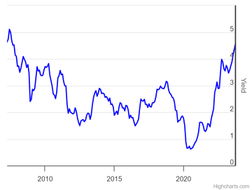 Výnos 10letého státního dluhopisu USA nejvýše od roku 2007