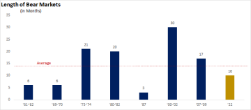 Graf: Ukazuje historickou délku medvědích trhů s průměrem kolem 13 měsíců. Zdroj: Bloomberg